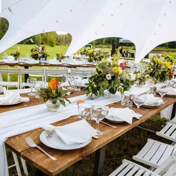 When you want something that makes a bit of a statement, there’s nothing like the cool chic of a Star Stretch Tent. They are available in single and double peak designs and come in a variety of sizes.