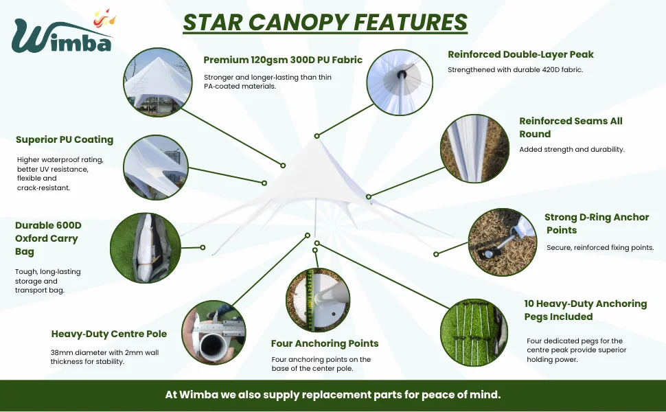 The Star Stretch Tent is a great choice for events because while it covers a big space when it’s up, its compact design ensures it folds away neatly and can be easily transported in most small vehicles.