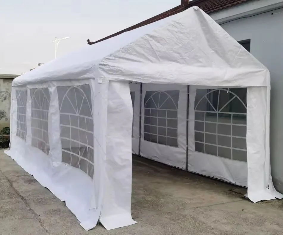 | Size | W | L | Ridge H | Eave H | Standing | Chairs | Tables |