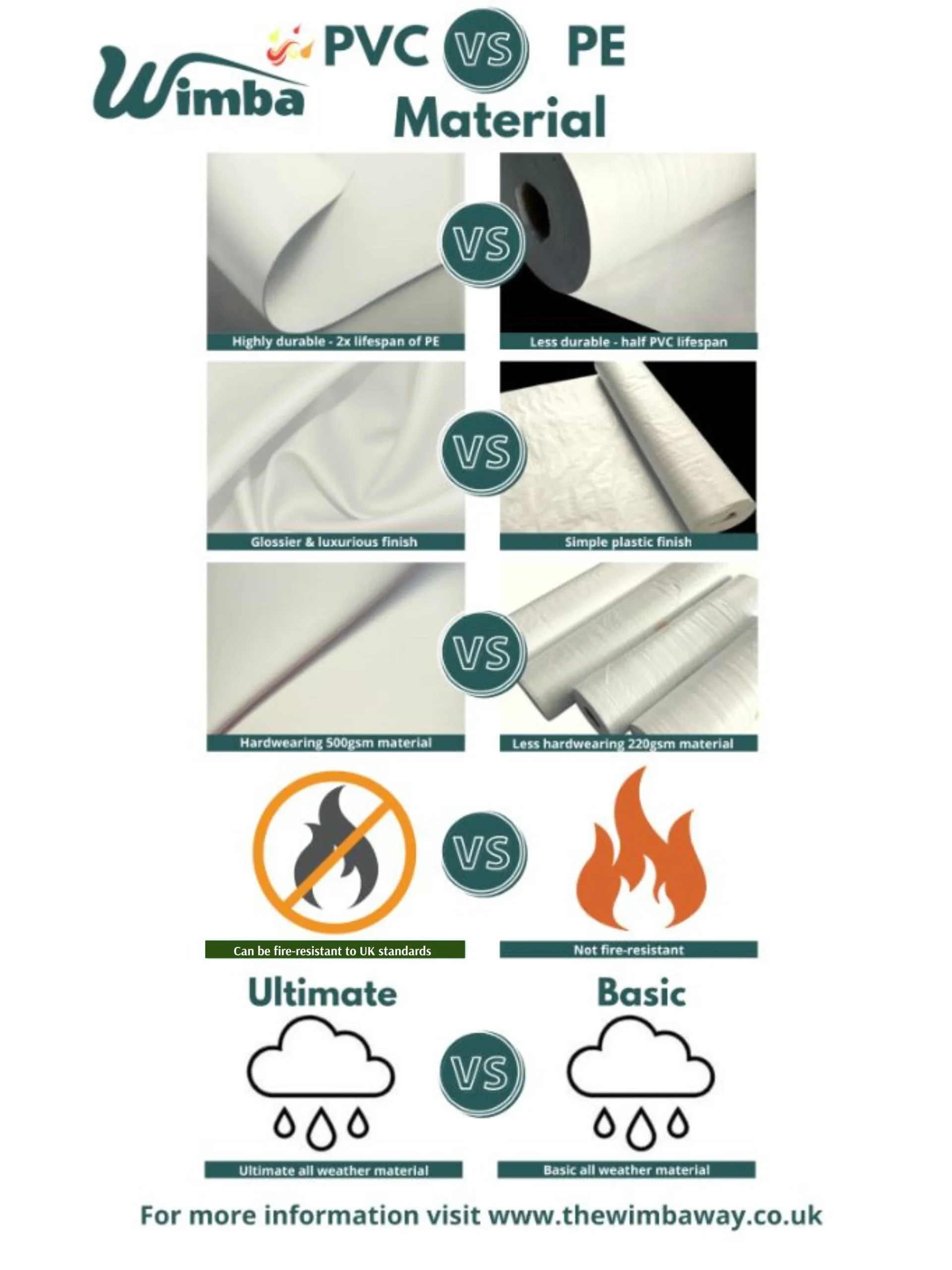 • Material Quality: 500gsm PVC roof and sides providing a high-grade covering engineered for superior waterproof performance and extended durability