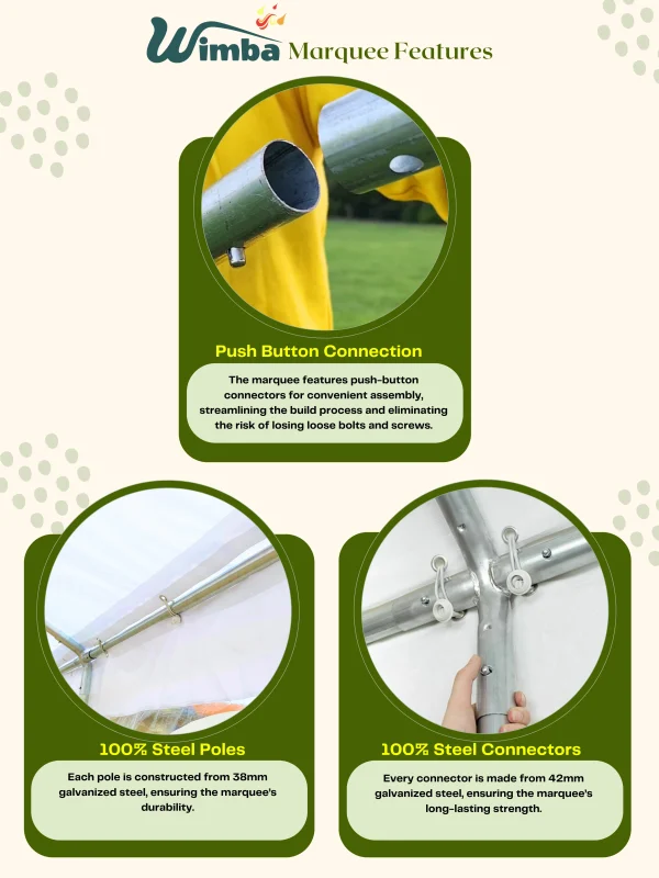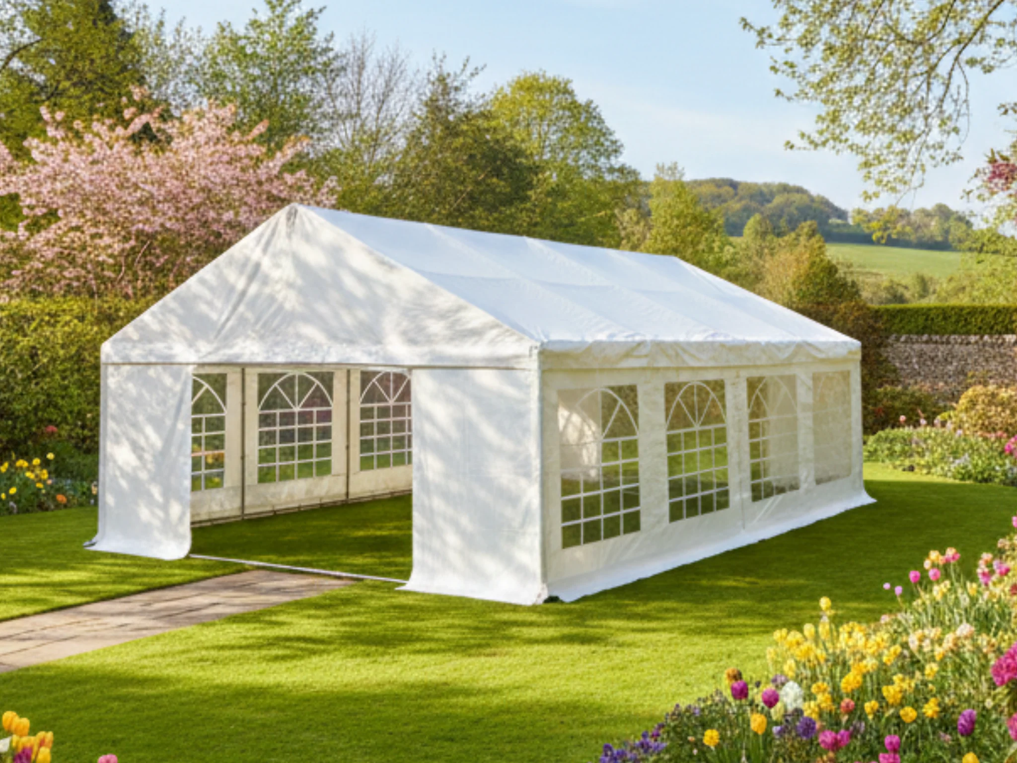 Our Heavy-Duty range is an affordable solution for converting any outside area into your ideal location. Like all our marquees, the frame is made of galvanized steel that is protected against corrosion. This range also comes complete with 220gsm PE tarpaulin for both the roof and side panels.
