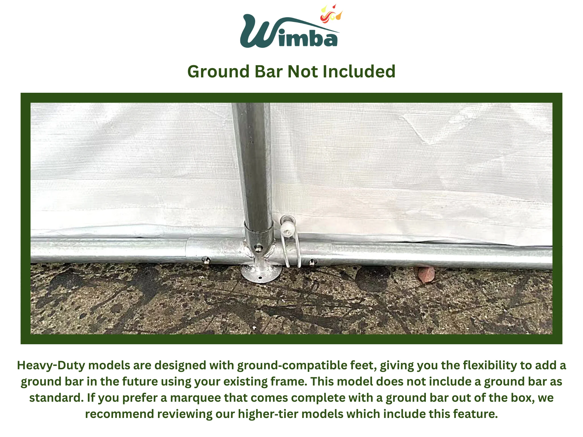 • Anchoring: Always use the guy ropes and pegs provided to secure the marquee when using. It is also recommended to use additional marquee anchoring kits such as weights and ratchet straps for additional support (can be provided).