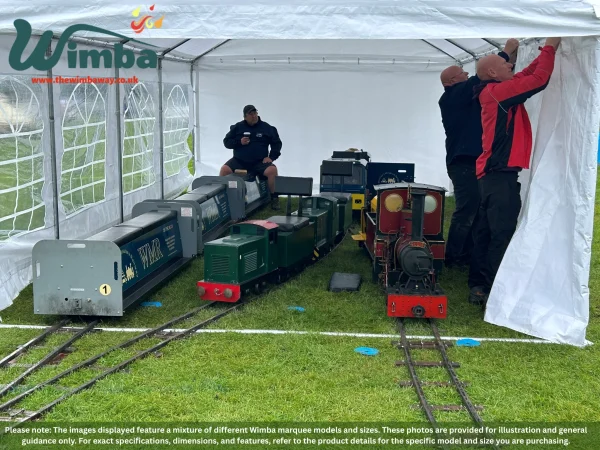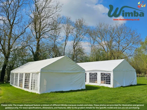 All in all a brilliant service from Wimbaway from start to finish. We love our Marquee. It is sturdy, good quality and perfect for what we were looking for. The tent went together easily and wasn't too difficult to fold away afterwards. The carry cases were also good, although I wonder how long the handles will last?! Delivery was very quick and pricing was reasonable. We look forward for many years of use from this marquee, but are pleased to hear that replacement parts are available to order separately if required in the future. I'd definitely recommend this product and company!