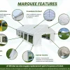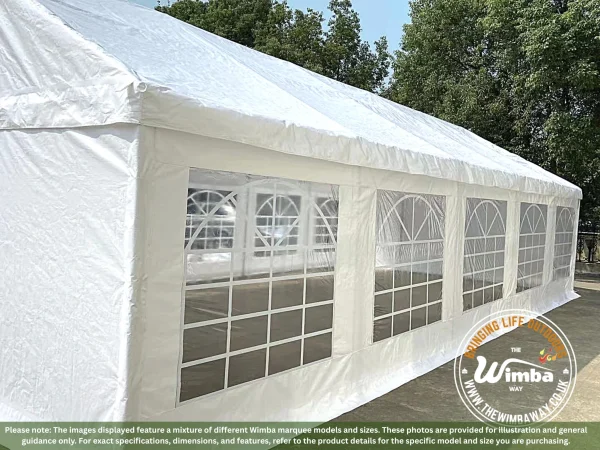 Our Heavy-Duty range is an affordable solution for converting any outside area into your ideal location. Like all our marquees, the frame is made of galvanized steel that is protected against corrosion. This range also comes complete with 220gsm PE tarpaulin for both the roof and side panels.