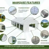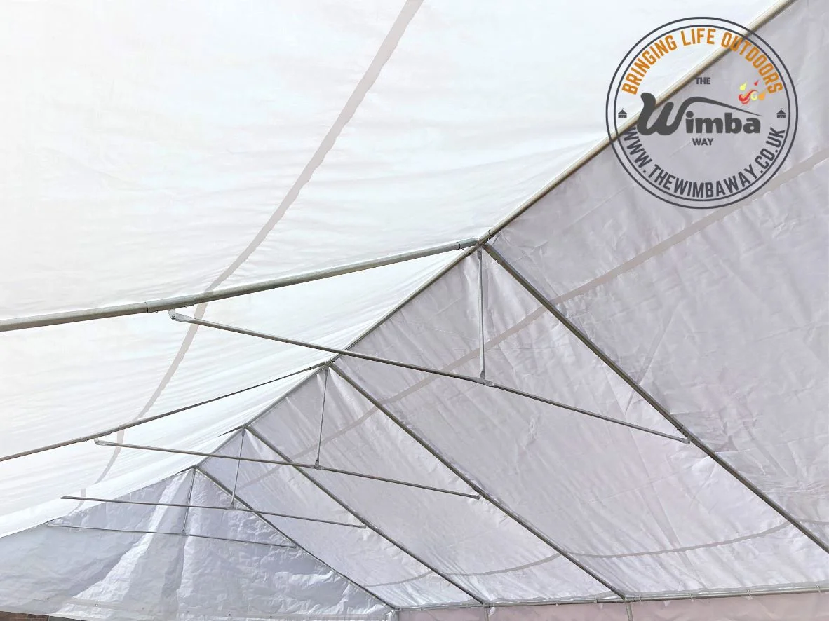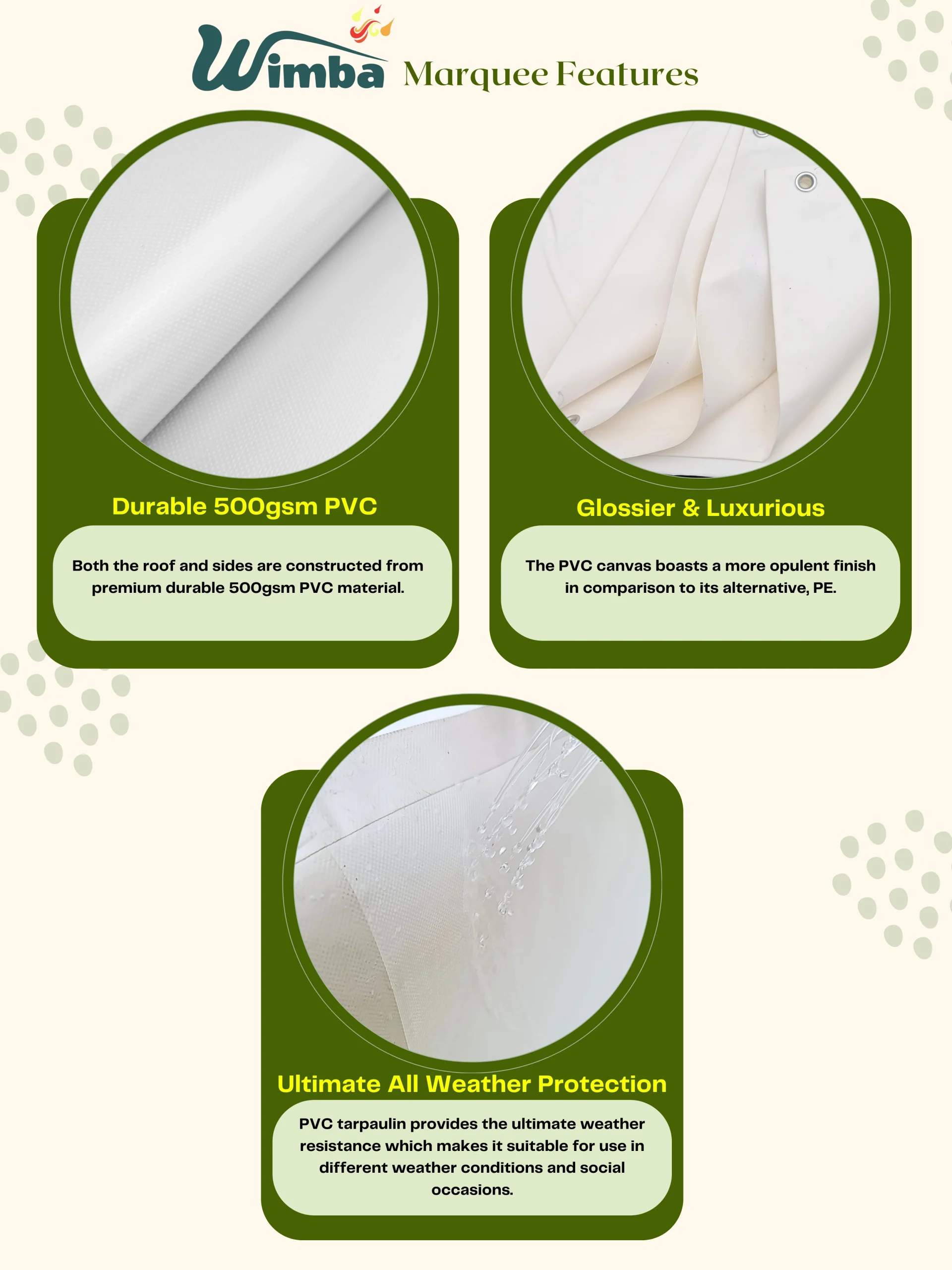 Our Deluxe Heavy-Duty Plus range is our grade 2 range. Like all our marquees, the frame is made of galvanized steel that is protected against corrosion. This range also comes complete with hard wearing 500gsm PVC tarpaulin for both the roof and side panels and a ground bar for the legs and cross bar for the roof for extra stability.