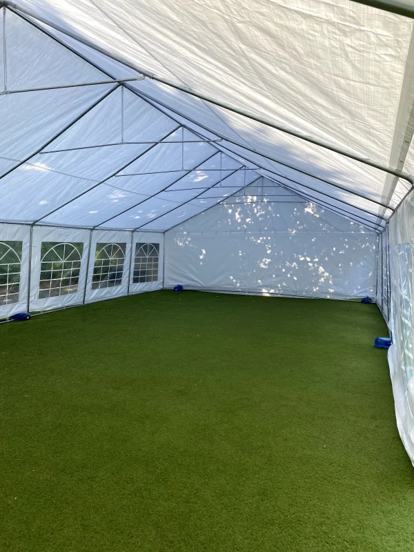 Our Commercial Grade range is our highest grade 1 range. Like all our marquees, the frame is made of galvanized steel that is protected against corrosion. This range also comes complete with hard wearing 500gsm PVC tarpaulin for both the roof and side panels which is also fire-resistant to UK fire standard BS 7837-1996. The range also comes with a ground bar for extra stability.